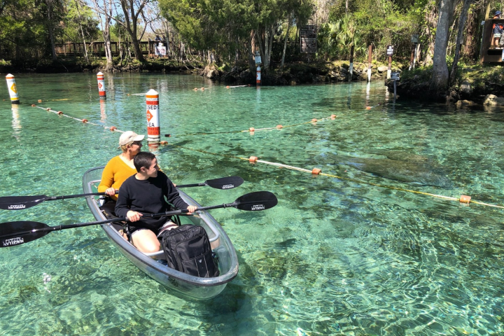 Kayak with Manatees in Crystal River in our 100% clear kayaks!