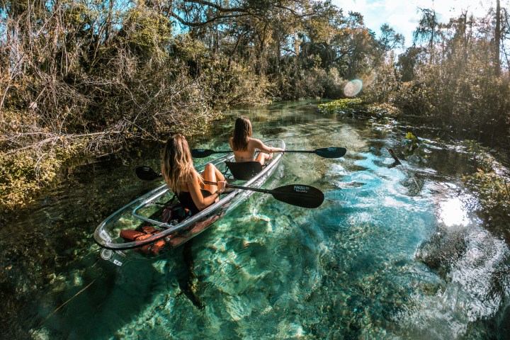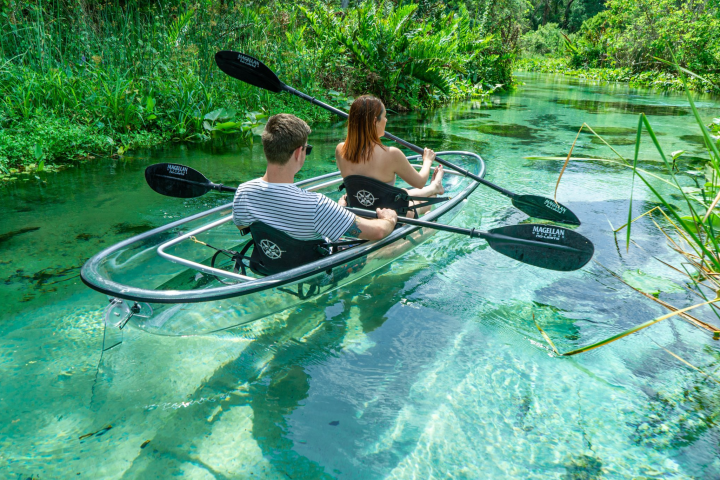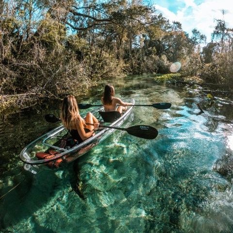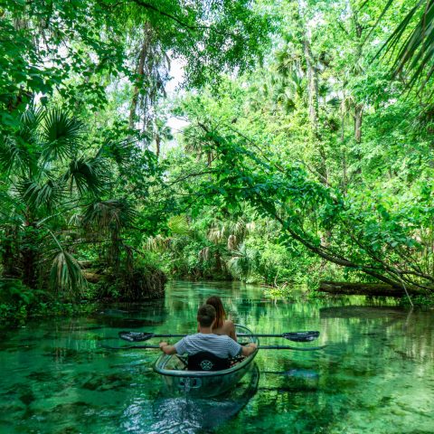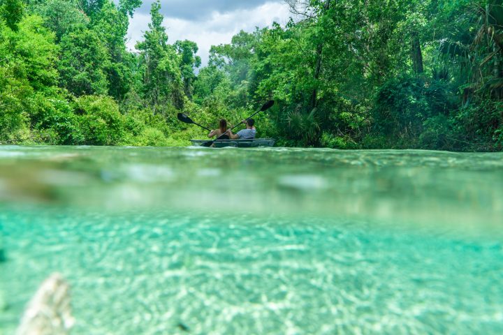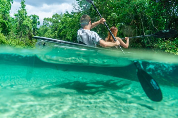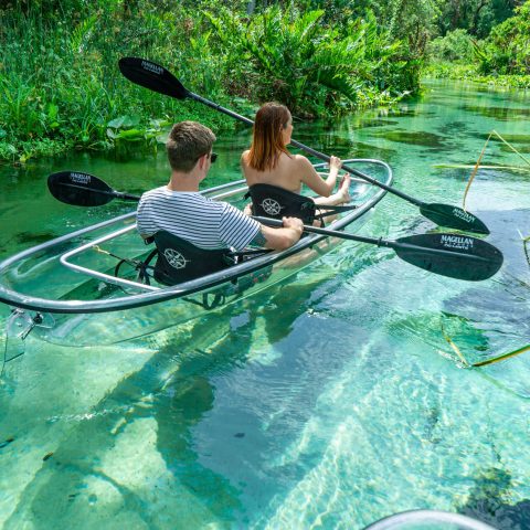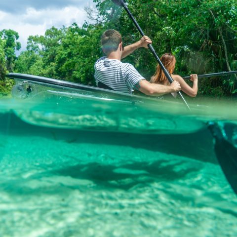 Rock Springs Run is a beautiful and unique destination for kayaking, and Get Up And Go Kayaking is the perfect company to experience it with. This is the closest spring to Orlando, FL and we’ve continually heard from guests how great of a change of pace it is from the theme parks and busy-ness of Orlando and surrounding towns. Don’t let a normal kayak or paddle board hinder your viewing experience – take a clear kayak!