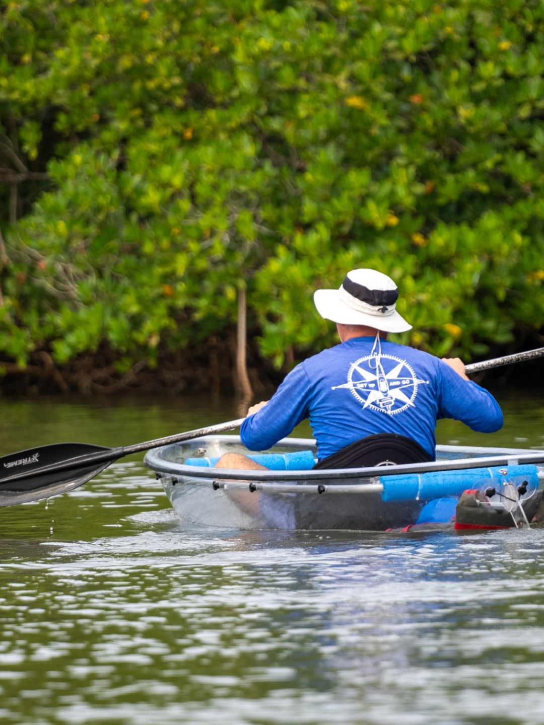 - Any extra gear you’d like. Remember- the less gear, the more visibility through the kayak.