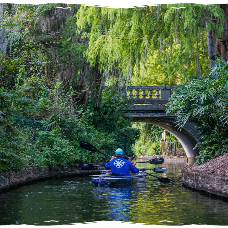 Winter Park is a charming city that is the closest Get Up And Go Kayaking location we have to Orlando. Paddling through the winding Venetian-style canals you’ll find the picturesque city is laced with history and lined with some of Florida’s finest plant life. Plenty of birds, fish, and other wildlife are likely to make an appearance, along with extravagant mansions that are nestled along the lakes.